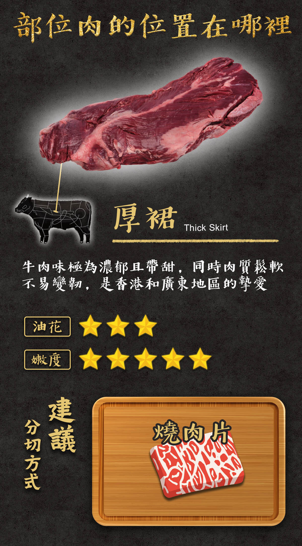 (備註:燒肉片依部位肉的特性分切厚度)